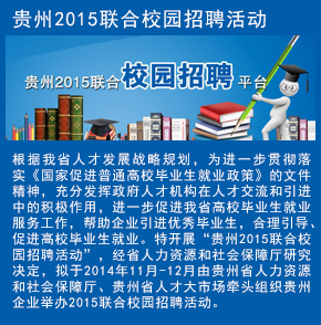貴州省人才大市場(chǎng)是貴州省人力資源專業(yè)服務(wù)和招才引智的標(biāo)志性窗口,本著“以人為本、服務(wù)社會(huì)、一流設(shè)施、一流水準(zhǔn)”的宗旨,致力于提供“一體化”的專業(yè)人力資源服務(wù)。作為人力資源和社會(huì)保障部、貴州省人力資源和社會(huì)保障廳開展貴州省高校畢業(yè)生就業(yè)活動(dòng)的政府公共服務(wù)平臺(tái),貴州省人才大市場(chǎng)充分發(fā)揮政府人才機(jī)構(gòu)在人才交流和市場(chǎng)化配置中的積極作用,進(jìn)一步促進(jìn)貴州省高校畢業(yè)生就業(yè)服務(wù)工作,幫助企業(yè)引進(jìn)優(yōu)秀畢業(yè)生,合理引導(dǎo)、促進(jìn)高校畢業(yè)生就業(yè)。