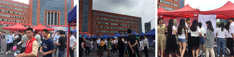 6月29日早晨, 滿載招聘企業(yè)的兩輛大巴車緩緩駛?cè)胄@,在貴州省人才大市場工作人員的引導(dǎo)下,企業(yè)招聘負責(zé)人簽到入場、領(lǐng)包入座,靜靜地等待著求職學(xué)生的到來,北京時間十點整,招聘會活動正式開始,學(xué)生們也從四面八方魚貫而入,學(xué)生咨詢聲、企業(yè)解答聲、混合著畢業(yè)的笑聲,將活動推上了一波又一波的高潮。