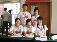 工作人員統(tǒng)一著裝奧運(yùn)服熱情迎接客戶